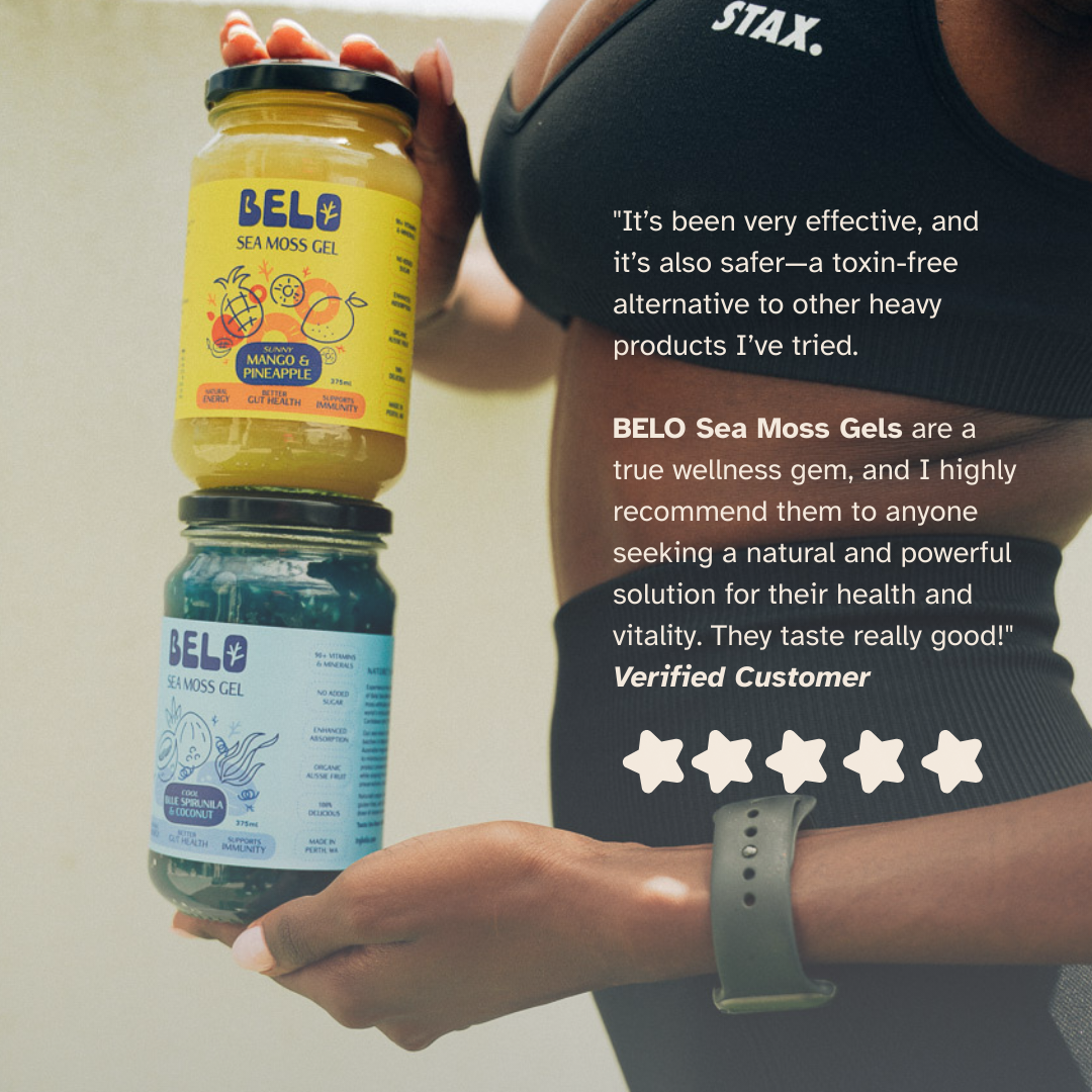 Belo Sea Moss Gels contain no additives, preservatives, or artificial flavours.